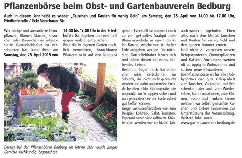 Pflanzenbörse beim Obst- und Gartenbauverein Bedburg