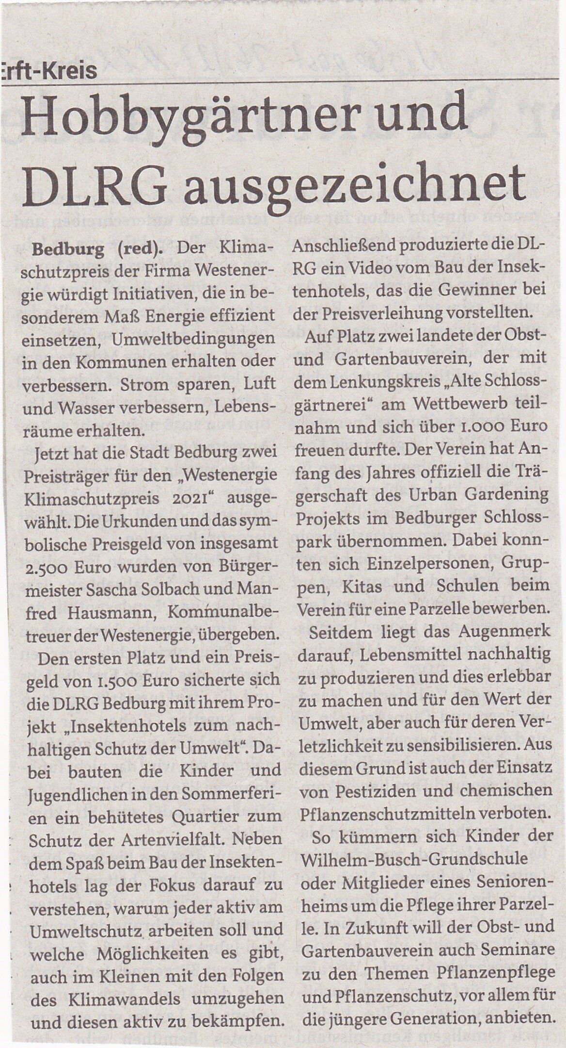 Hobbygärtner und DLRG ausgezeichnet - Klimaschutzpreis 2021
